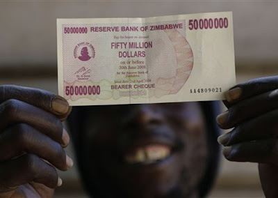 Êpa! Estou falando do dólar zimbabuano. A notinha foi lançada hoje pelo banco central do Zimbábue, na África. Acredite: essa “fortuna” vale apenas US$ 1 – o suficiente para comprar três pães.